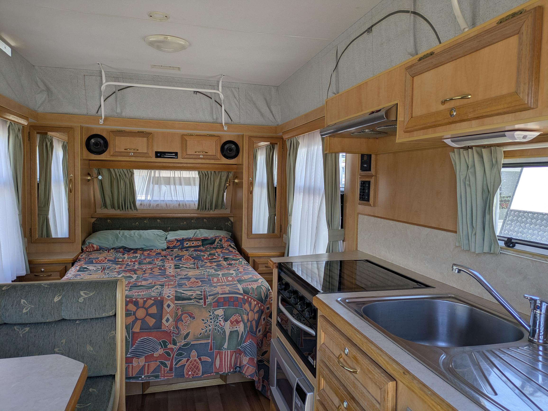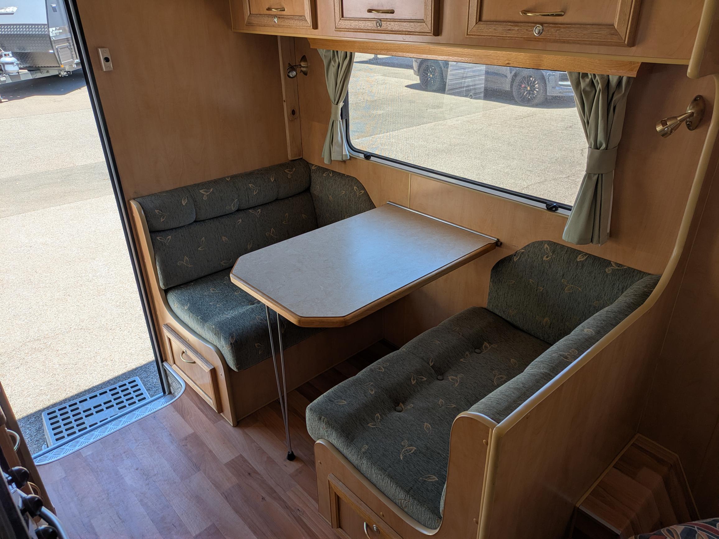This Imperial Off Road Pop Top is a great little van but still has the important features that you are looking for. Coming in at only 14ft but will have an Island Bed with Storage under the bed, cafe' seating arrangement and kitchen area featuring a mini grill cooker and 90lt 3 way fridge / freezer. This pop top also has a stereo system and a roll out awning to enjoy the outdoors. Powering this pop top is 2 x batteries and to keep you warm you have a diesel heater. Under this great little pop top you will find 16 inch Wheels and Simplicity Suspension for extra ground clearance.